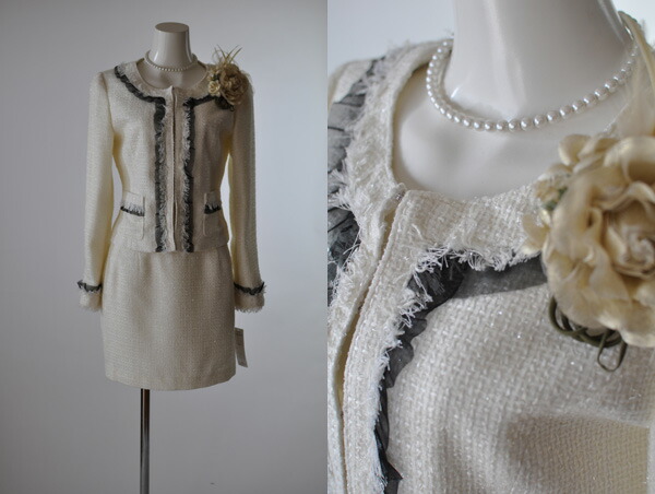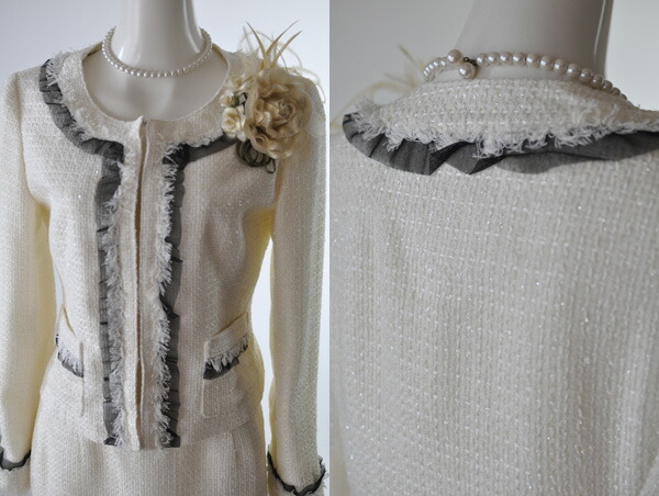 セレモニースーツ 13号 15号 フリンジ ラメ織り スーツ 学校行事 卒業式 入学式 服装 かわいいスーツ オフ 20代 30代 40代 50代 308