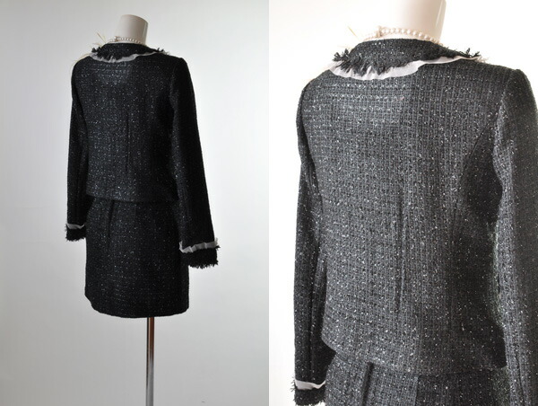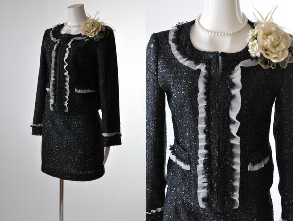 送料無料 即納 小さいサイズ 7号 9号 11号 13号 15号 17号 19号 大きいサイズ フリンジが好印象のラメ織り生地スーツ 学校行事 卒業式 入学式 服装 かわいいスーツ オフ 黒 308(AM5/BL2F1Y6)