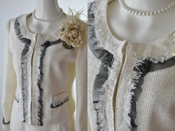 フリンジが華やかに揺れるフェミニンスーツ ラメ入りでパーティーにも!