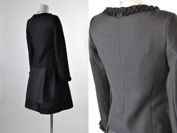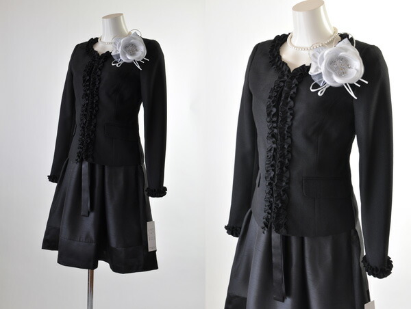 フォーマル セレモニー スーツ おしゃれ きれいめ 20代 30代 40代 50代 60代 70代 母親 11号 13号 フリルジャケット&シャンタンワンピーススーツ カラーフォーマルスーツ 七五三 お宮参り 入学式 春 秋 黒 オフ 273 b2f3y