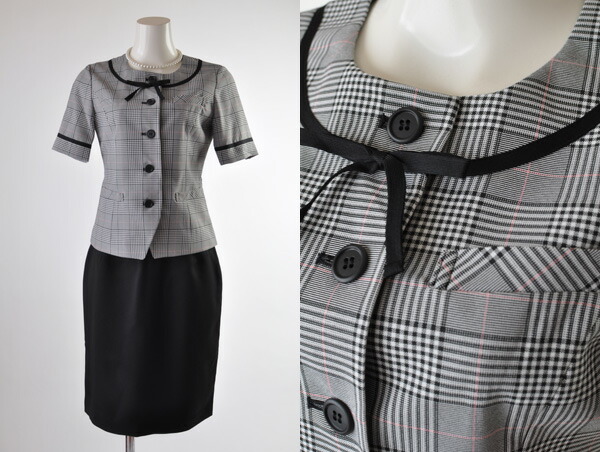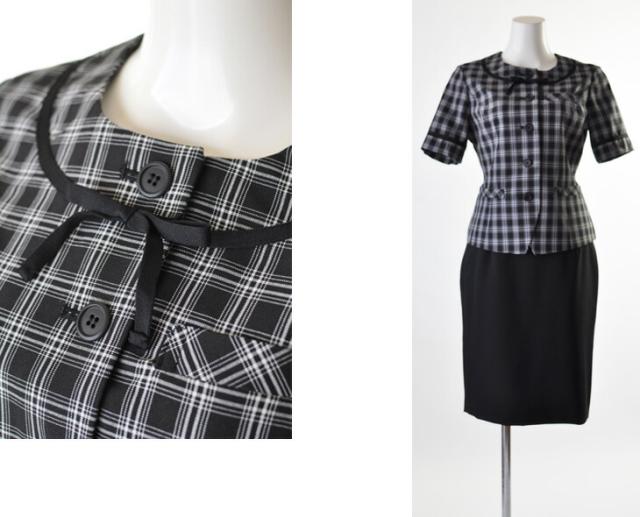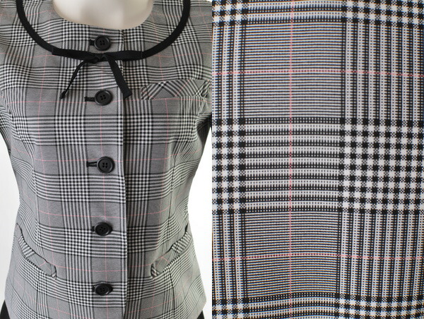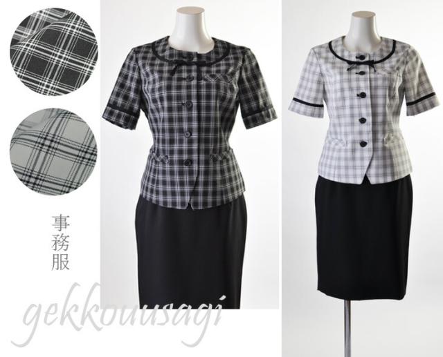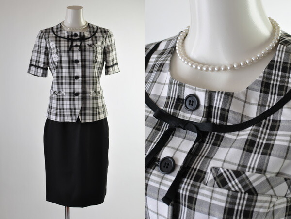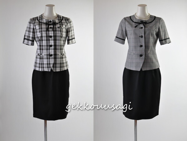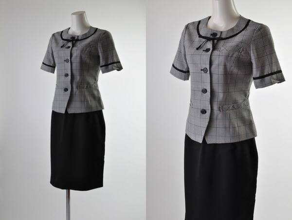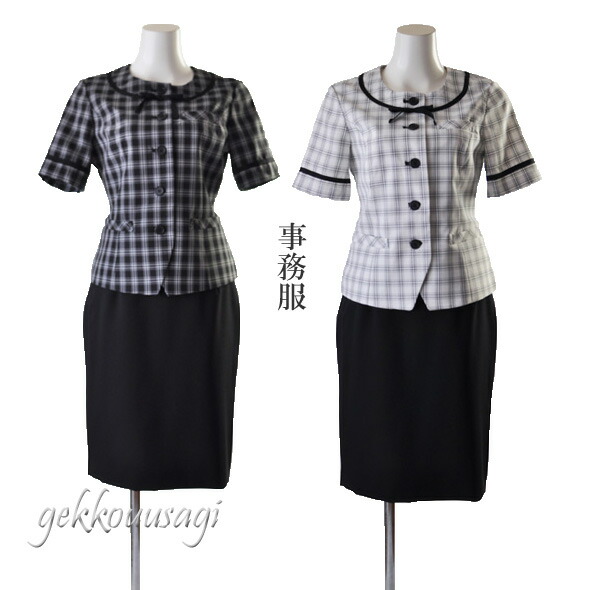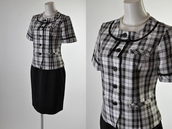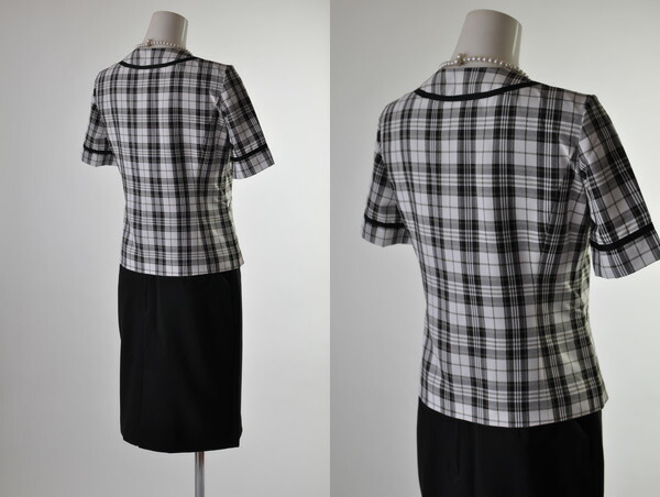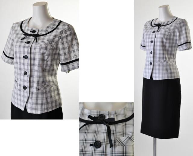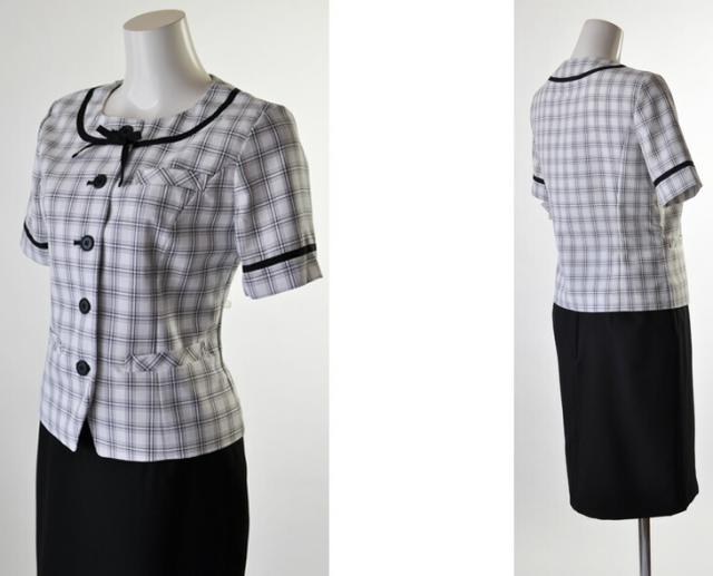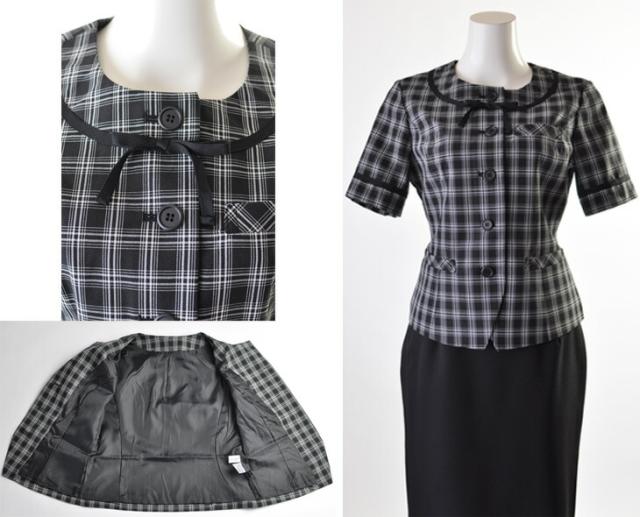 7号/9号/11号/13号/15号/17号/19号 制服 事務服 洗濯機で洗える半袖ジャケット 半袖オーバーブラウス サマースーツ 【黒地×白格子柄・白地×黒格子柄/オフホワイトチェック/グレーチェック】ブリットチェック 1251111・111/1251303/304【最安値挑戦】