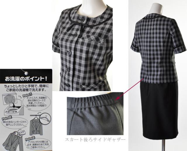 制服 事務服 洗濯機で洗える 半袖 ジャケット 半袖オーバーブラウス サマースーツ 上下セット 洗えるスーツ 夏服 111