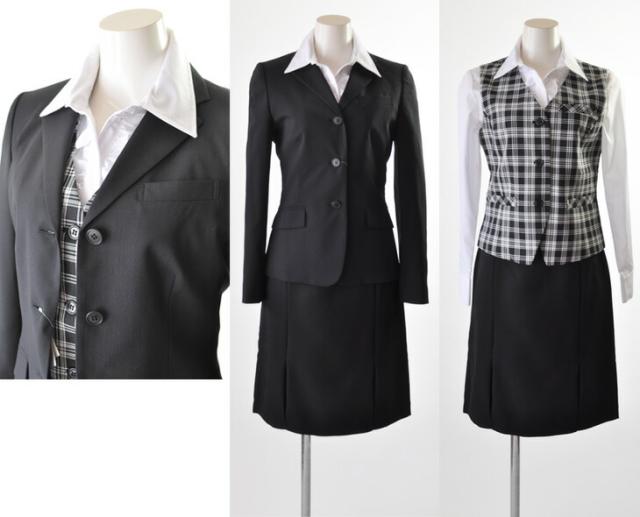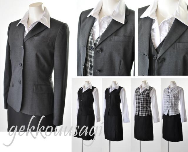 標準サイズ トールサイズ 5号〜17号 3点セット 3つボタンジャケット【ブラック・グレー】ベスト スカート 事務服 953(819)