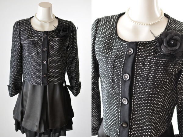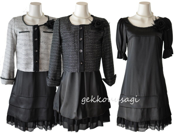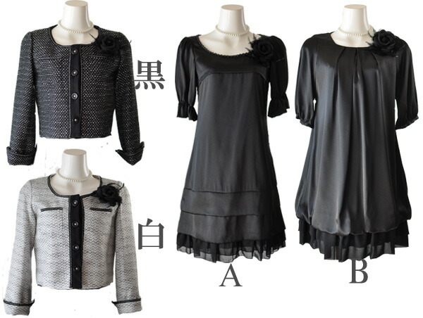 黒ジャケットとワンピース(A)、白ジャケットとワンピース(A)、黒ジャケットとワンピース(B)の3パターン。