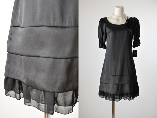 ワンピース(A)は、光沢感のある黒色生地。