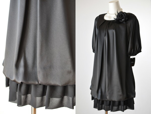 ワンピース(B)は、光沢感のある黒色生地。