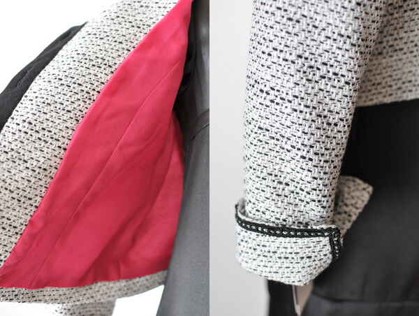 裏地の色は黒ジャケットは紫紺、白ジャケットはピンクです。