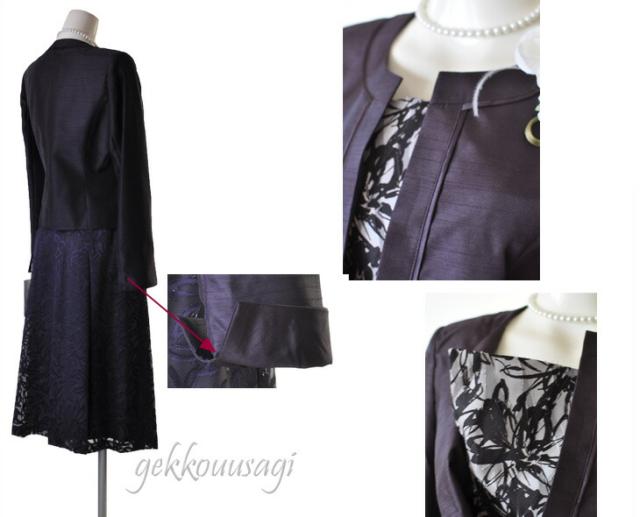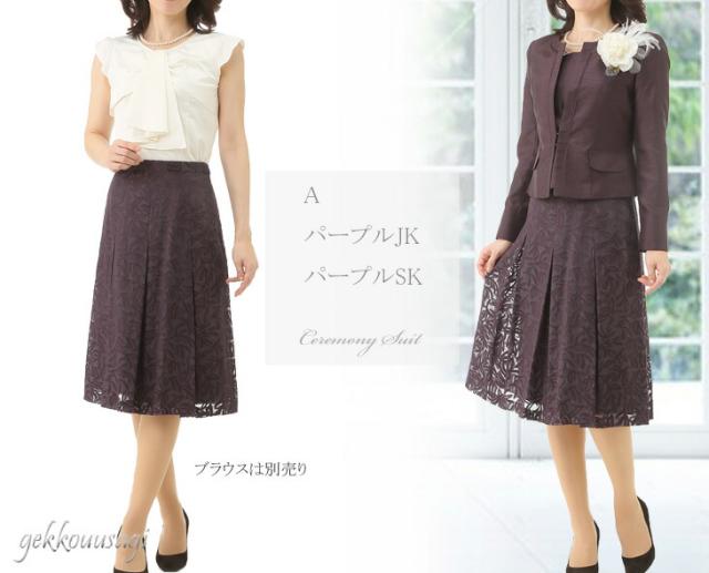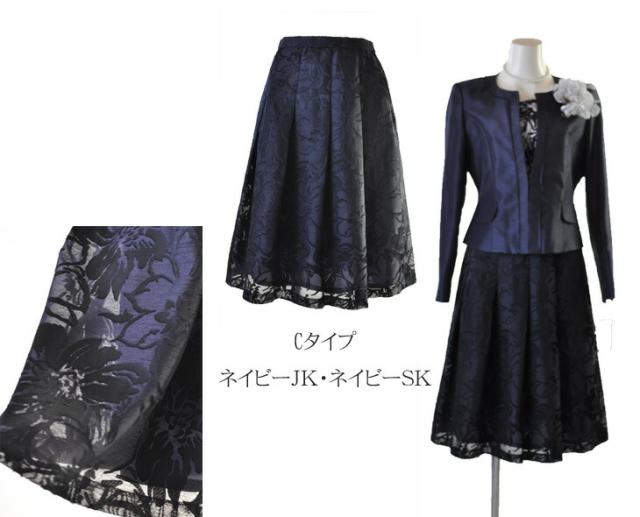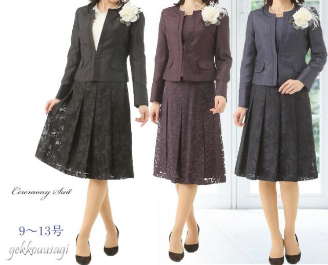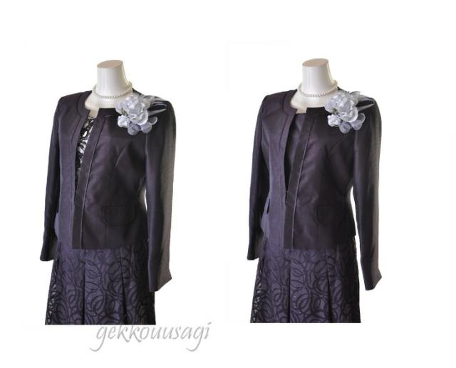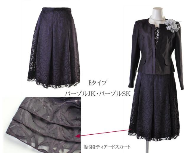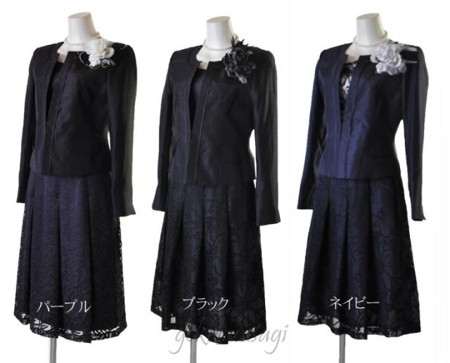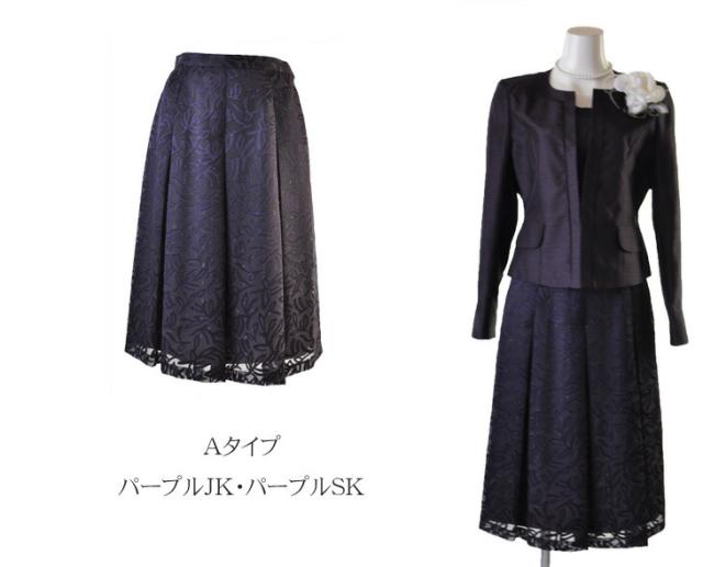 9号 11号 13号 光沢感 ママ 祖母 シャンタンジャケット オパール フレアスカート パープル ネイビー ブラック スーツ 961-695/692/230/230
