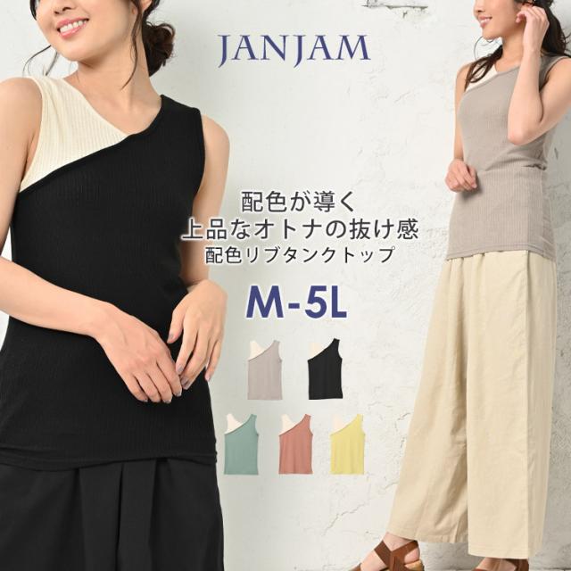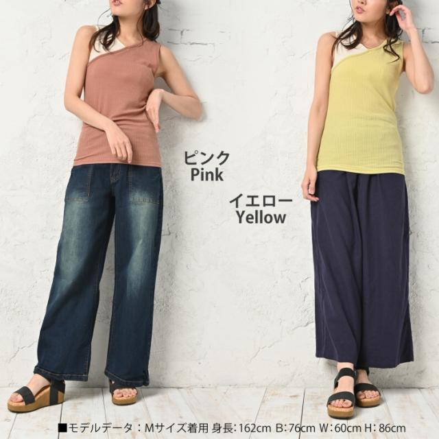 【メール便対応】配色切り替えデザインが様になるリブタンクトップ。程よいフィット感でスタイルにも馴染みます。