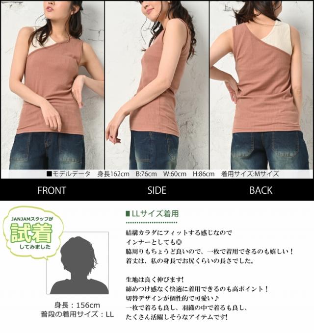 アシメタンク インナーウェア おしゃれ チラ見せ 重ね着風 ゆったりサイズ ぽっちゃり女子 プラスサイズ