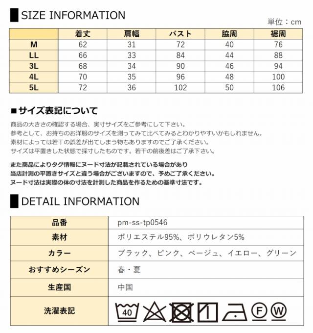 5L:着丈72 肩幅36 バスト102 脇周50 裾周106