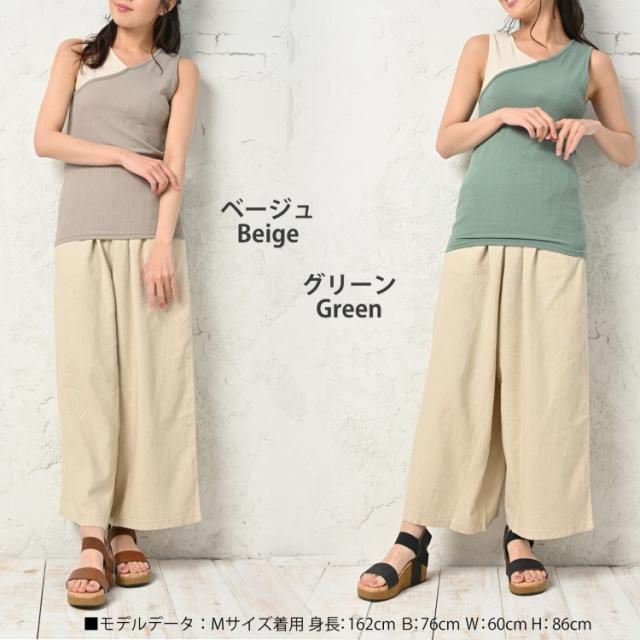 大きいサイズ レディース 配色リブタンクトップ メール便対応 Vネック バイカラー切り替えデザイン カシュクール風
