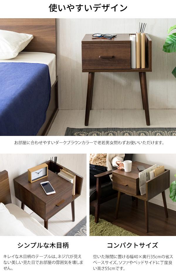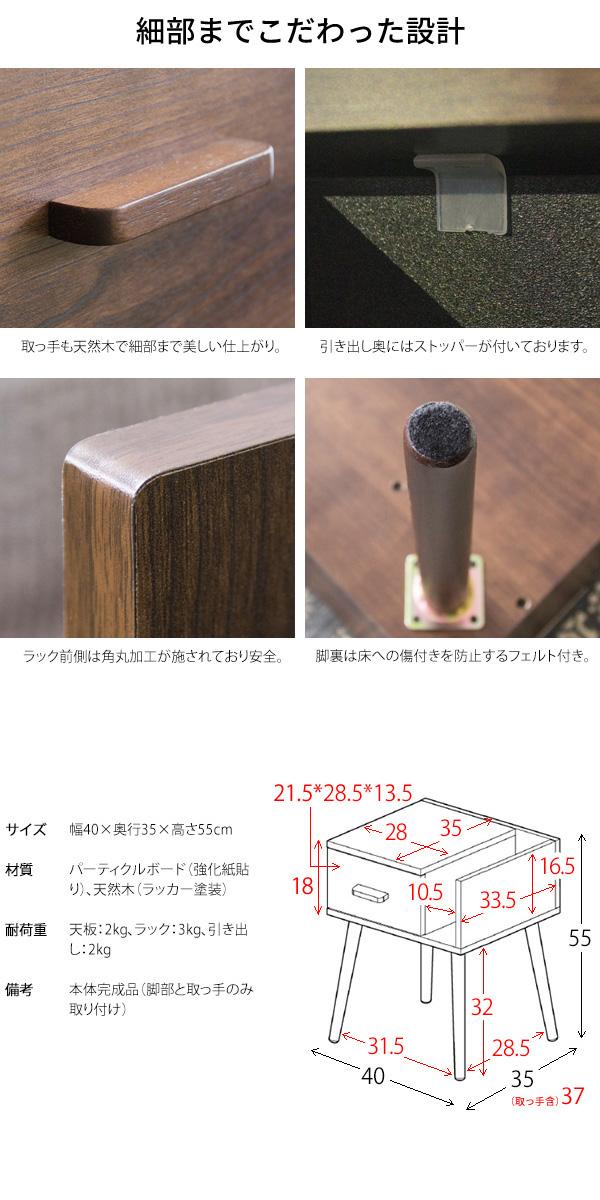 TRA-ST【1台 単品】 サイドテーブル ナイトテーブル カラー| ウォールナット ブラウン色 サイズ| 幅40×奥行35×高さ55cm