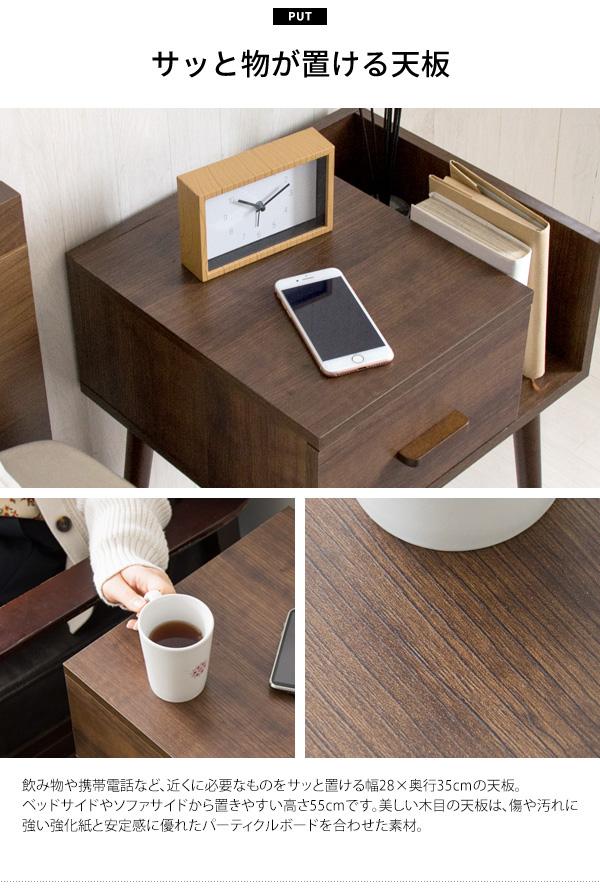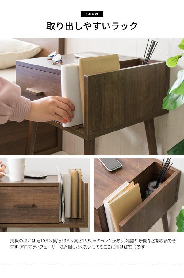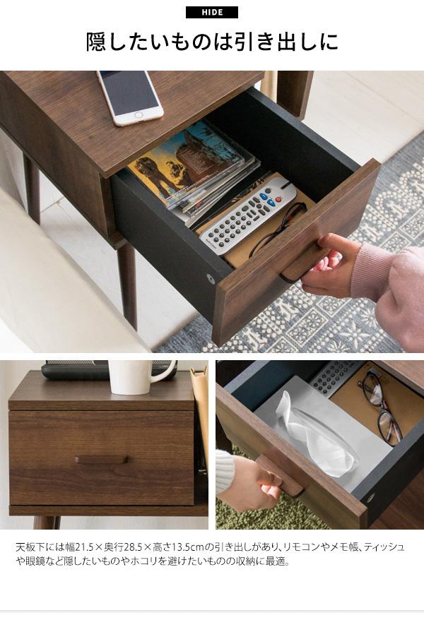 雑貨やリモコンなどを収納できる引き出しの3つの収納が一つになった便利なデザインです。