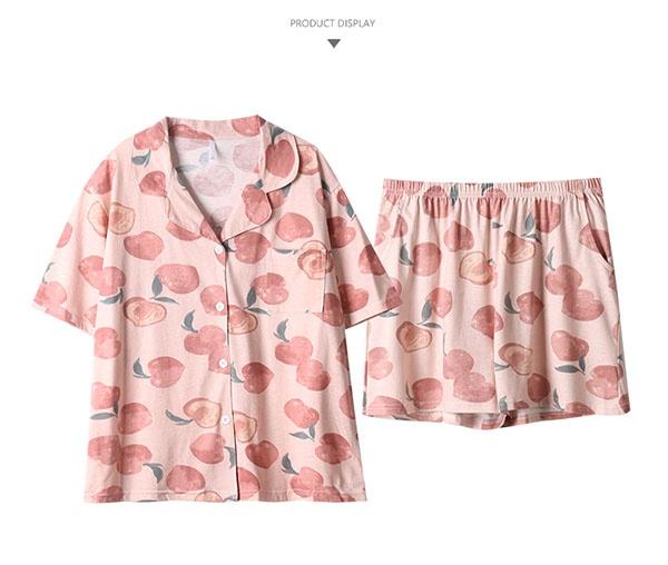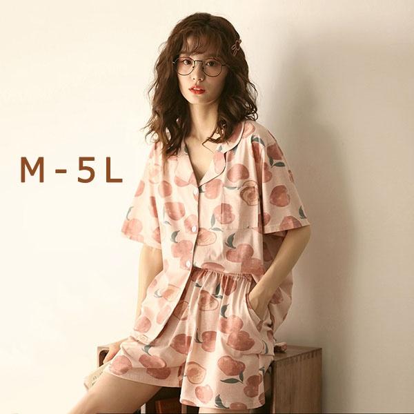 パジャマ 上下セット 半袖 桃柄 もも 部屋着 寝間着 サマーパジャマ ルームウェア 春 夏 コットン 女性 かわいい 大きいサイズ 5L ぽっちゃり レディース 前開き ショーパン 短パン お家時間 ゆったり リラックス 誕生日 ギフト 結婚祝い プレゼント M L 2L 3L 4L 5L