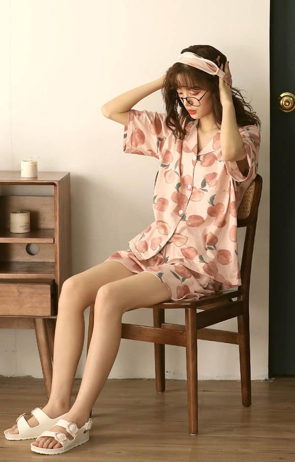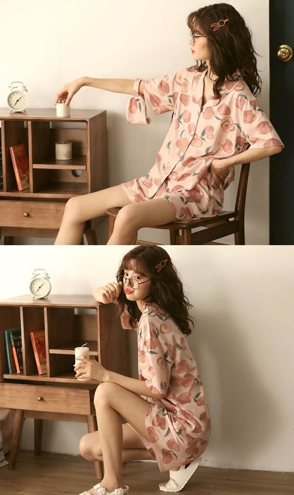 パジャマ 上下セット 半袖 桃柄 もも 部屋着 寝間着 サマーパジャマ ルームウェア 春 夏 コットン 女性 かわいい 大きいサイズ 5L ぽっちゃり レディース 前開き ショーパン 短パン お家時間 ゆったり リラックス 誕生日 ギフト 結婚祝い プレゼント dh030n1
