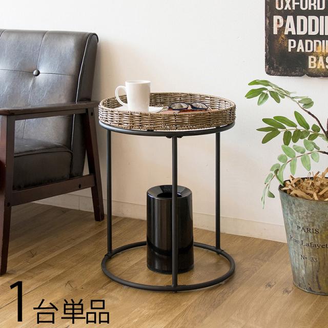 職人の手によって一つ一つ丁寧に編まれた丈夫な人工ラタンを天板に使用したラウンド型サイドテーブル。