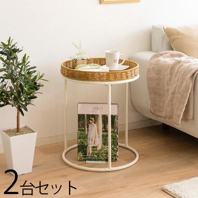 RTA-ST 【2台 セット】人工ラタンサイドテーブル ナイトテーブル カラー| ナチュラル色/3色あり サイズ| 幅40×奥行40×高さ50cm 円形サイドテーブル