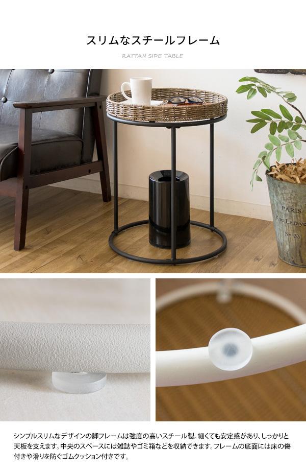職人の手によって一つ一つ丁寧に編まれた丈夫な人工ラタンを天板に使用したラウンド型サイドテーブル。