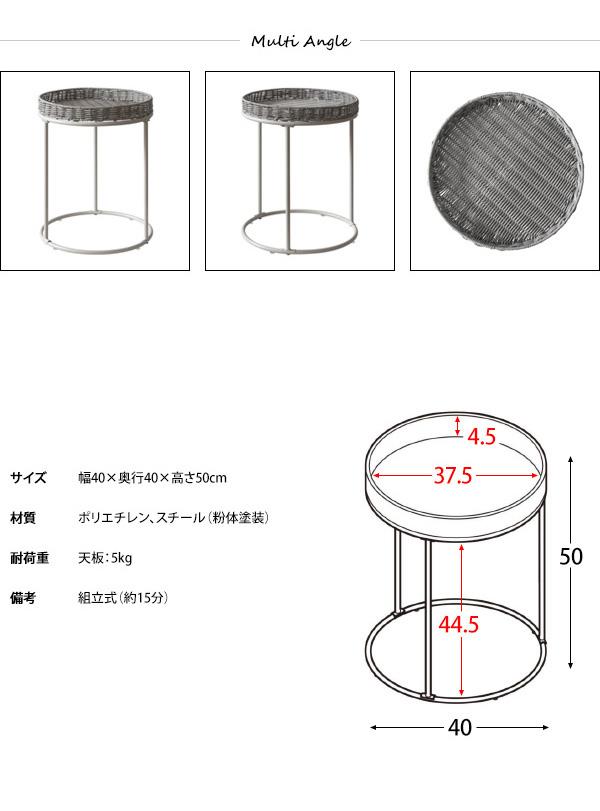 RTA-ST 【1台 単品】人工ラタンサイドテーブル ナイトテーブル カラー| グレー色/3色あり サイズ| 幅40×奥行40×高さ50cm 円形サイドテーブル