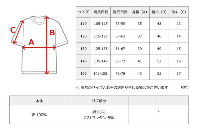 (身長目安/胸囲目安/身幅/着丈/袖丈:cm)