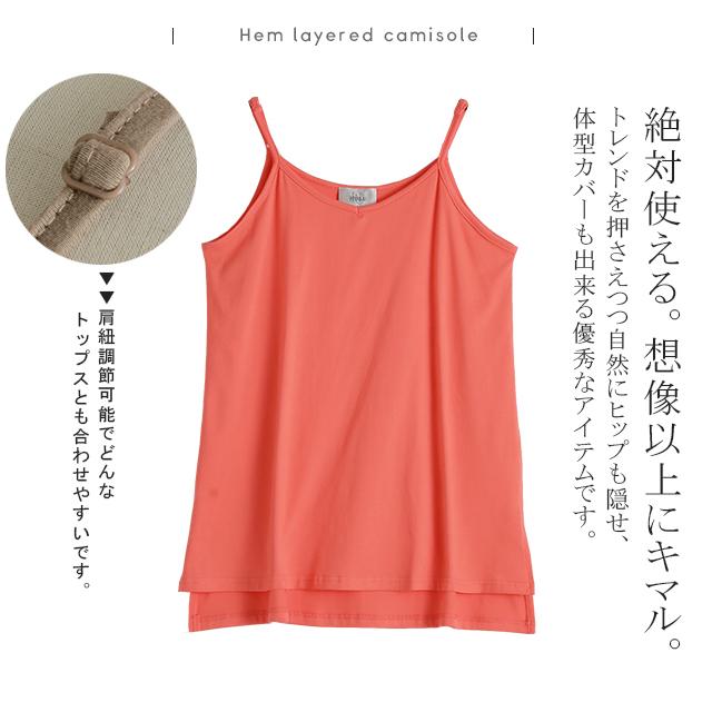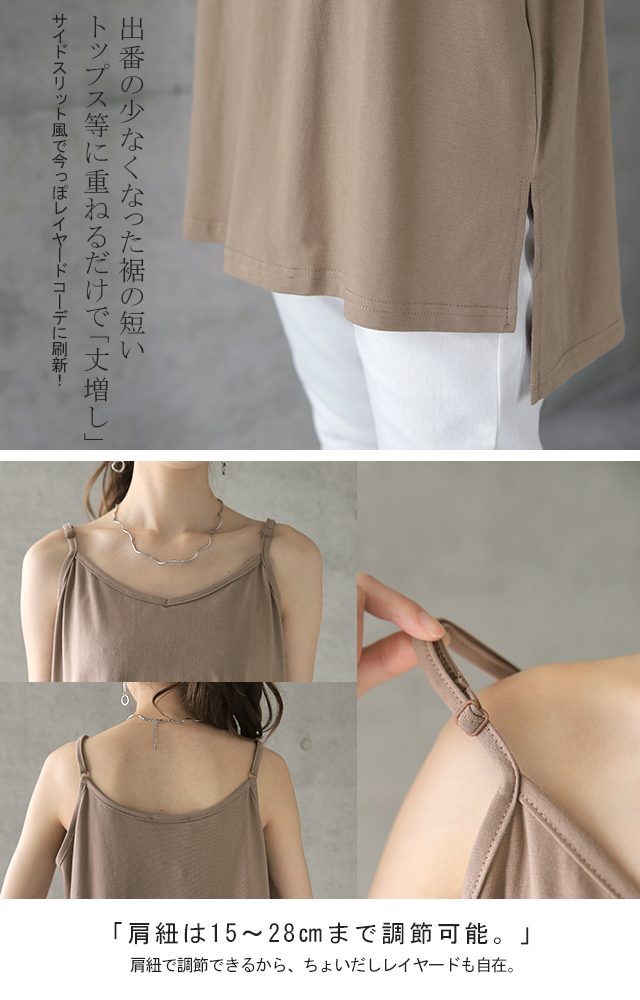 送料無料 「調節可能」レイヤードキャミ。 メール便 キャミソール レイヤード 一部12月下旬入荷 スリット レディース 重ね着 トップス 体型カバー お尻が隠れる 大きいサイズ キャミ インナー 付け裾 裾フレア レイヤード ロング 黒 白 冬 秋 秋新作