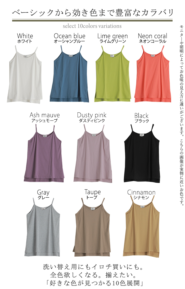 オールシーズン大活躍間違いなしの10色展開キャミソール。