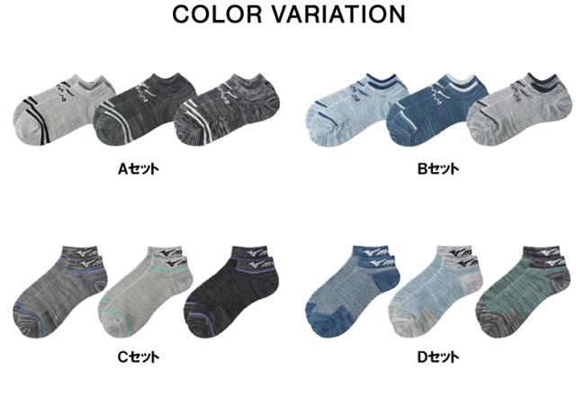 ブランド「MIZUNO・ミズノ」の夏用ソックス3足組セットです。
