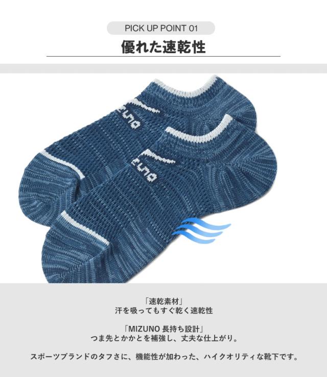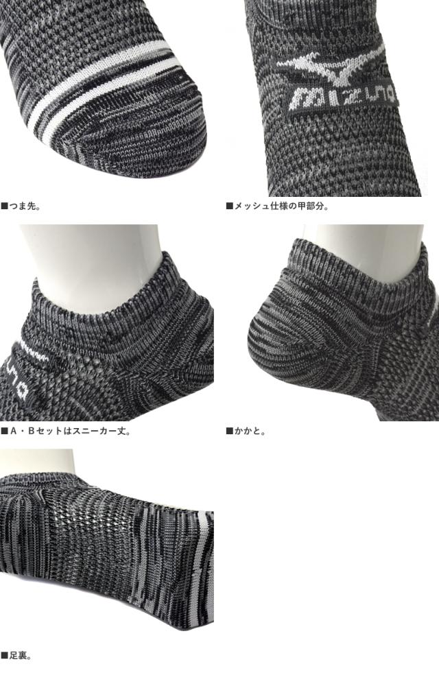 ソックス スニーカーソックス メッシュ 3足組 メンズ MIZUNO ミズノ 夏用 吸汗ソックス 3P 靴下 高通気設計 つま先 かかと 補強 正規品【Z4W】【パケ3】