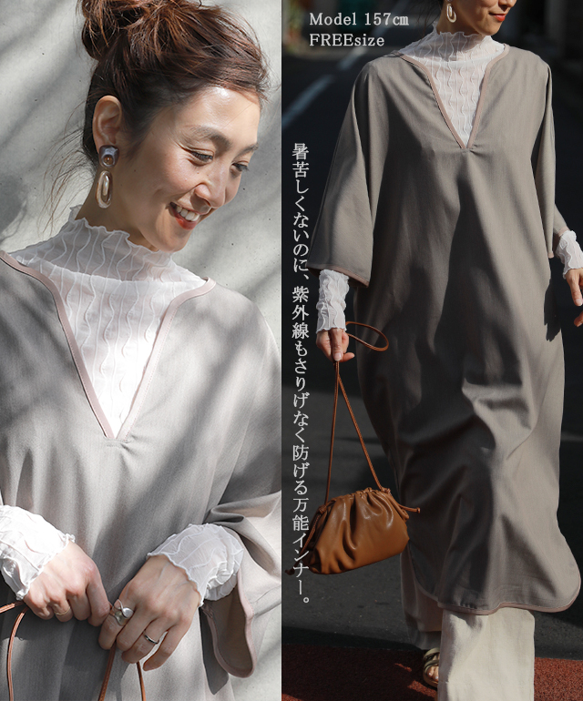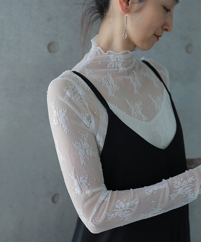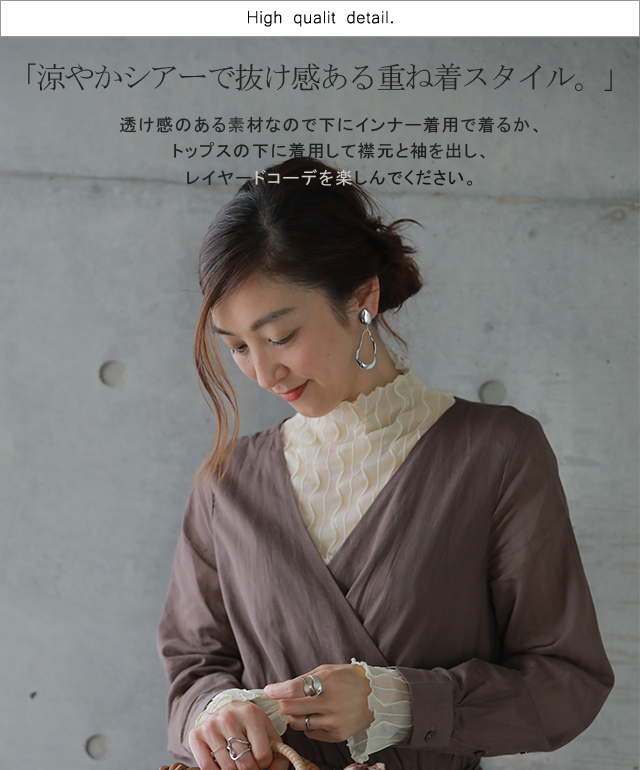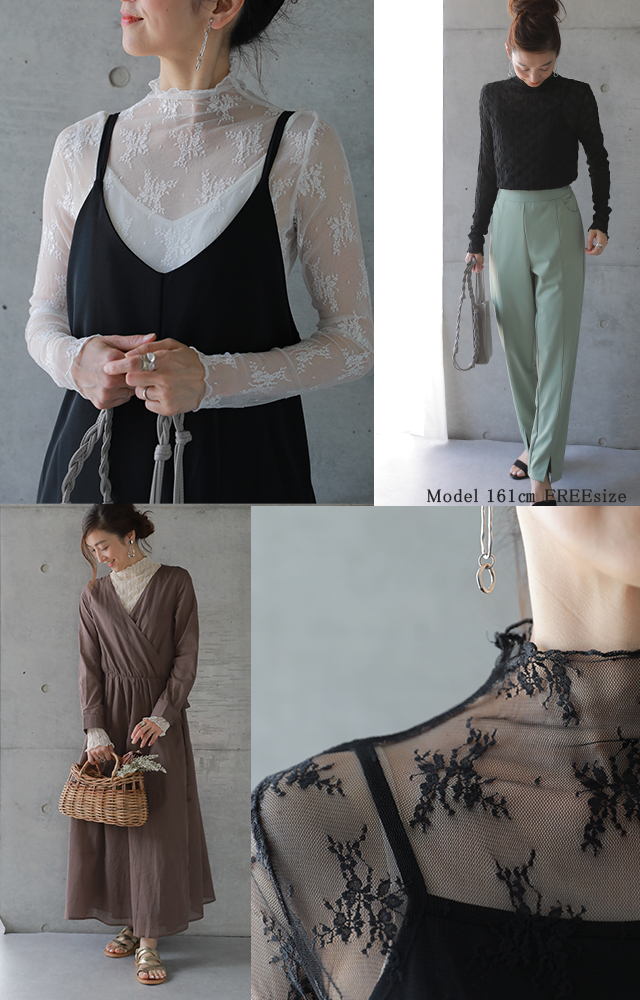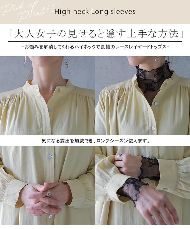 肌隠し「ファンデーション・インナー」気になる露出をカバー 大人MUSE・メール便 トップス レディース シースルー 一部4月下旬入荷 レース レイヤード ブラウス ハイネック シアー シンプル 長袖 透け 重ね着 きれいめ 冬 秋 秋新作