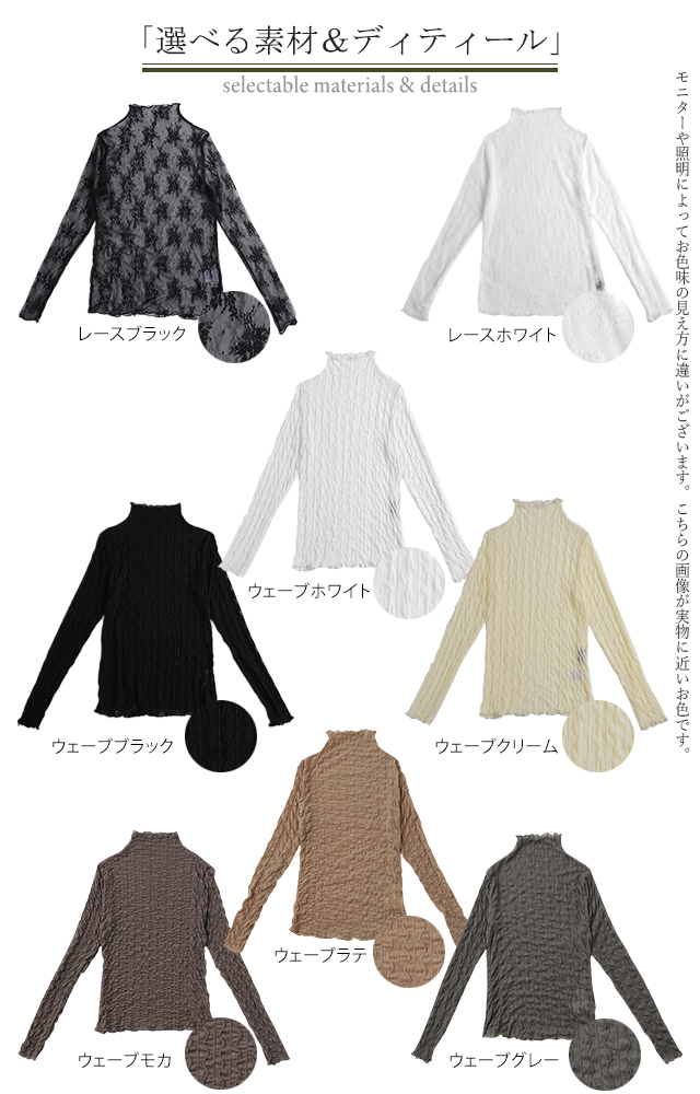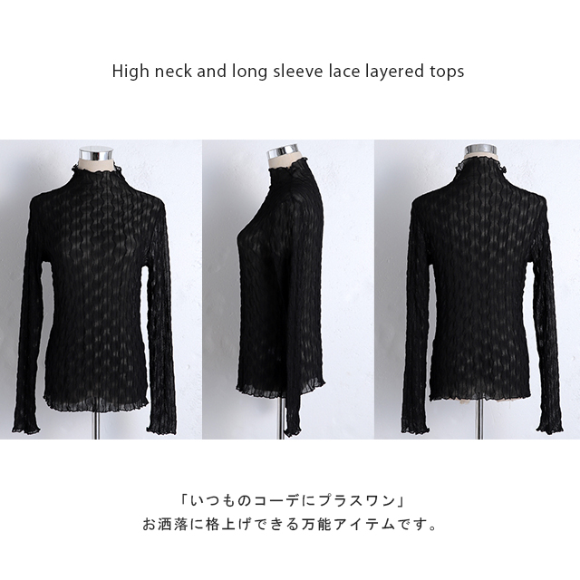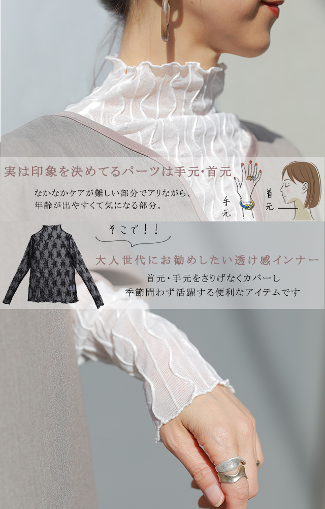 シアートップス シアーブラウス ハイネックトップス タートル ロングスリーブ シースルー 肌隠し 肌着 下着 レースネック レースカットソー ロンティ ロンT 体型カバー レイヤードブラウス 花 波 波模様 レース素材 クリンクル クリンクル素材 袖レース 結婚式 二次会 お呼ばれ フォーマル ドレッシー パーティー 大きいサイズ 着回し 薄手 シースルー UVカット キレイめ 透け ブラック ホワイト クリーム色 乳白色 オフホワイト 無地 動きやすい 着痩せ 華奢見え オンライン飲み会 大人 オトナ 女性 綺麗 きれい キレイ キレイめ 高見え 上質 上品 フリーサイズ フリー S M L LL 2L XL 3L XXL LLL 20代 30代 40代 50代 おしゃれ 春夏 秋冬 秋 冬 お洒落 オシャレ かわいい 可愛い カワイイ HUG.U HUGU ハグユー はぐゆー きれいめ 花柄 体型カバー 母の日 レイヤードトップス ブラウス ハイネック シンプル 長袖 重ね着 黒 白 レースインナー UV対策 日焼け対策 紫外線対策 冷房対策
