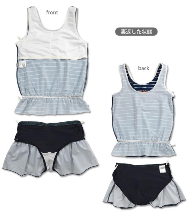 【メール便送料無料】キッズ・ジュニアタンキニ水着上下セット 130 140 150 160 セパレート水着 378084 女児 No.sw2937