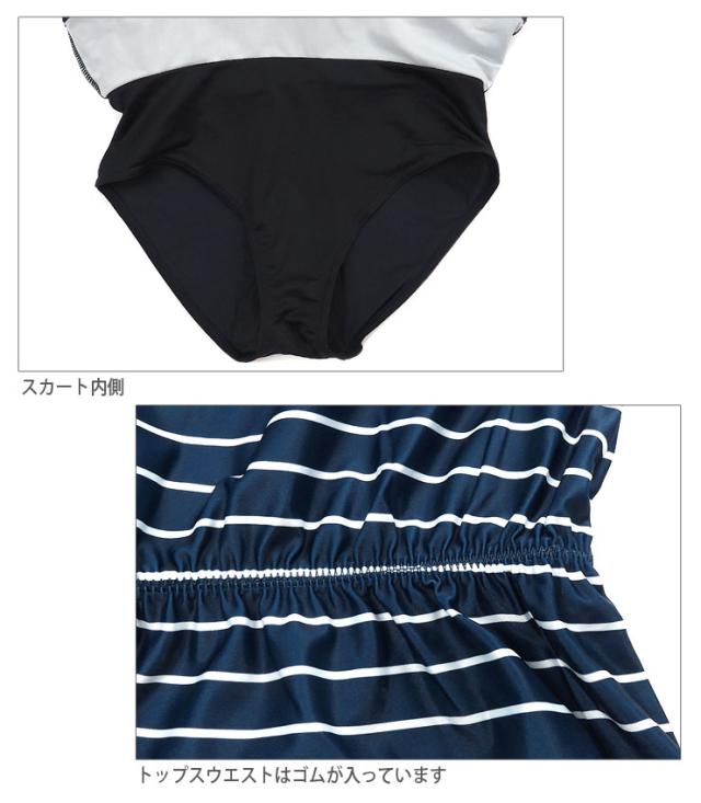 ボーダー+花柄のトップスとショーツ一体型のスカートのセットです。