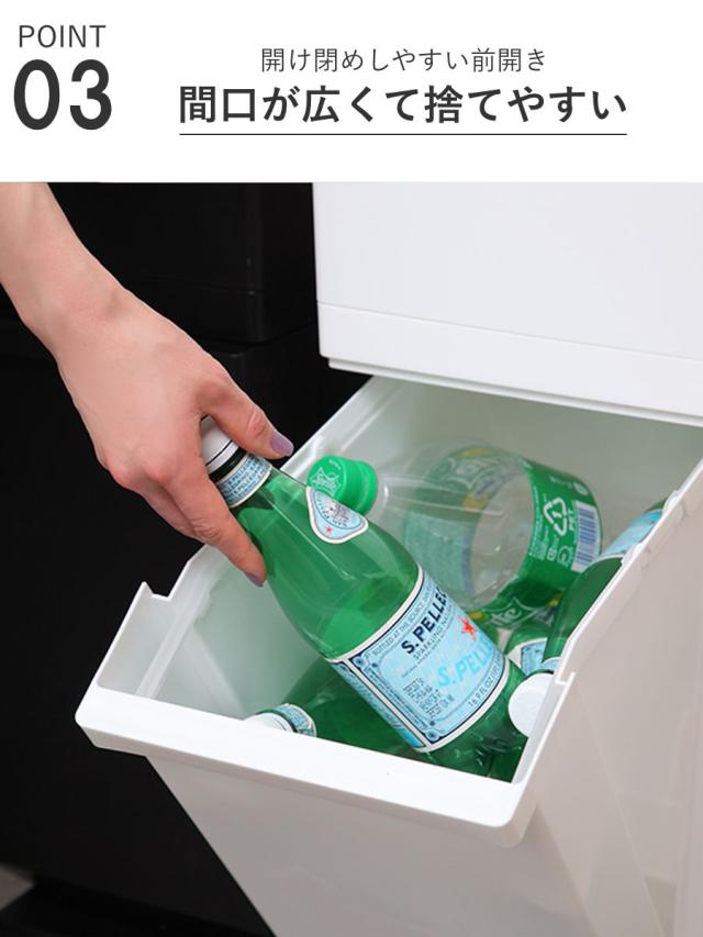 開け閉めしやすい前開きタイプの引き出しで、大きな開口部なのでかさばるペットボトル・空き缶・食品トレーなどのゴミが捨てやすいです。