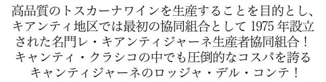 キャンティ・クラシコの中でも圧倒的なコスパを誇る キャンティジャーネのロッジャ・デル・コンテ!