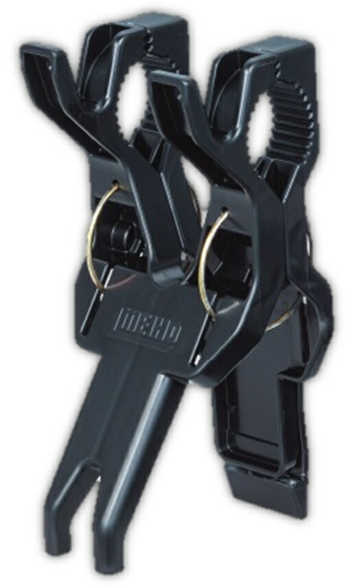 バケットマウスシリーズやランガンシステムBOXシリーズのオプションパーツ、マルチホルダーへ装着することで、竿掛けとして使用できる便利なクリップ。さらに船釣りでは、船べりのロッドホルダーや、パイプへ取り付けて、竿掛けとして使えたり、洗濯バサミのようにロッドを挟むことも可能です。ショア・オフショア問わずマルチに活躍する便利クリップです。