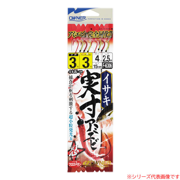 オーナー 船イサキ実寸アミエビ4本 F-6306 (サビキ仕掛け・ジグサビキ)