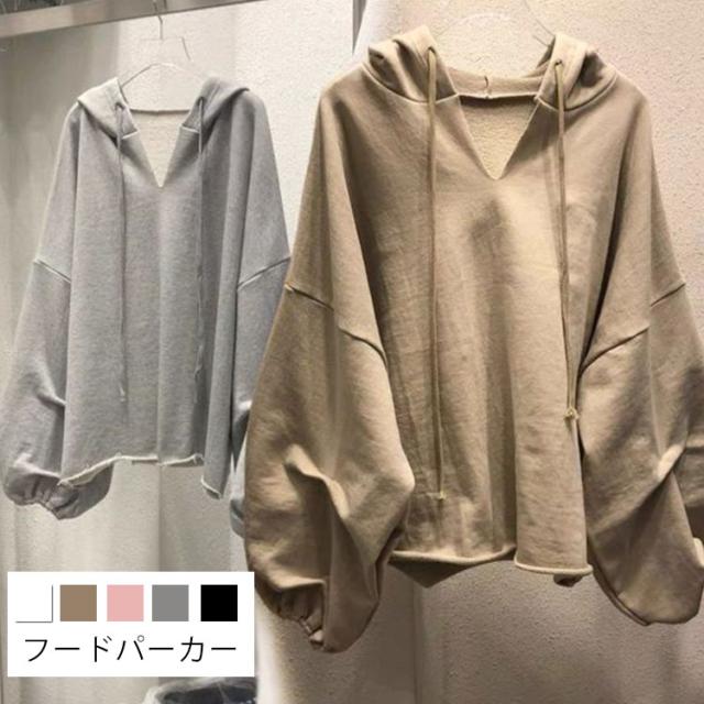 オーバーサイズ ビッグシルエット フードパーカー プルオーバー ビッグスリーブ 袖広 ドロップショルダー バルーン袖 トップス レディース 体型カバー ゆったり
