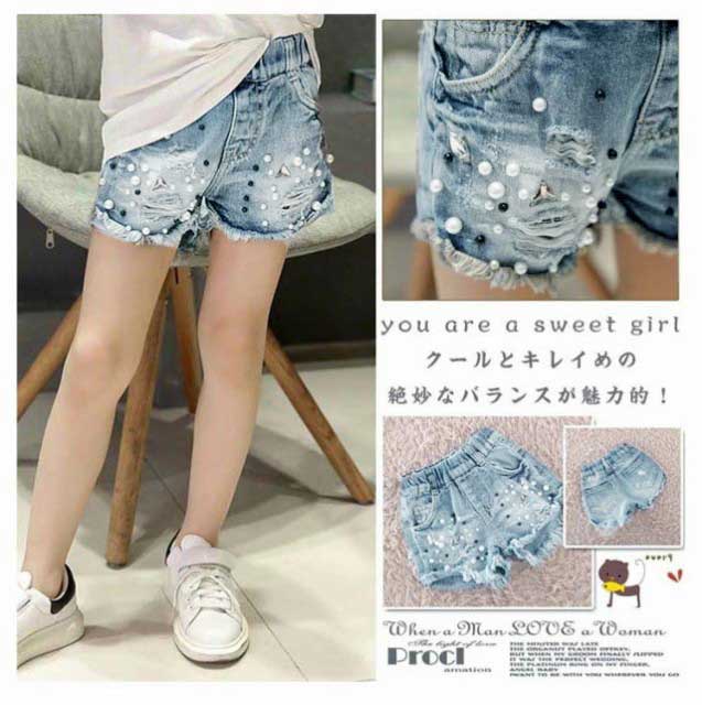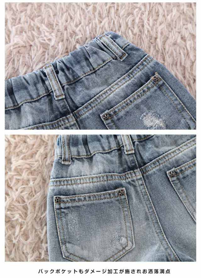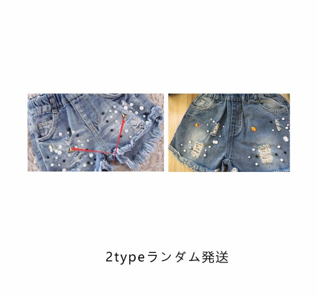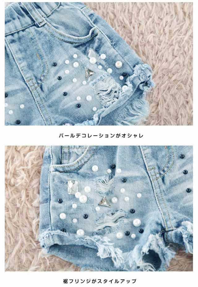 お洒落上級者に! デニムパンツ デニムショートパンツ ショートパンツ ビジュー付き パールビーズ 女の子 キッズ ジュニア ダメージ加工 クラッシュ加工 ウォッシュ加工 ハーフパンツ デニム ジーンズ お洒落 ファッション