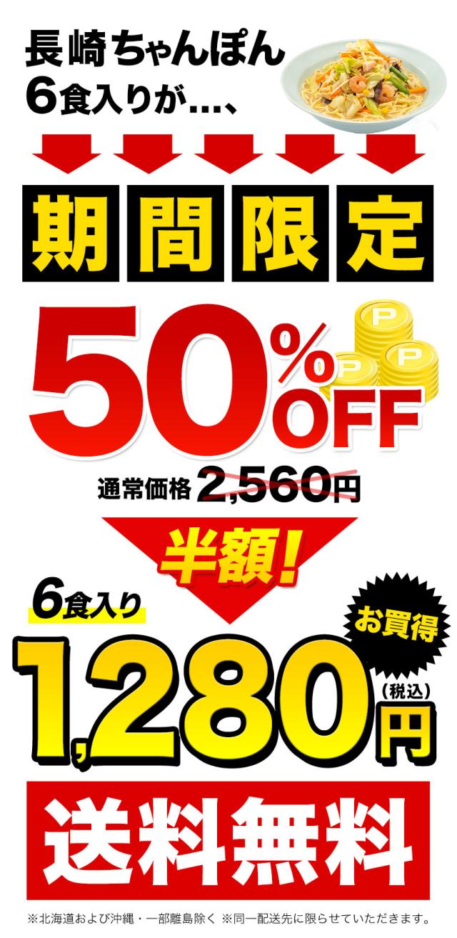 - 6食分入って1280円はお得でしょう。1食あたり213円でちゃんぽんが食べれる。