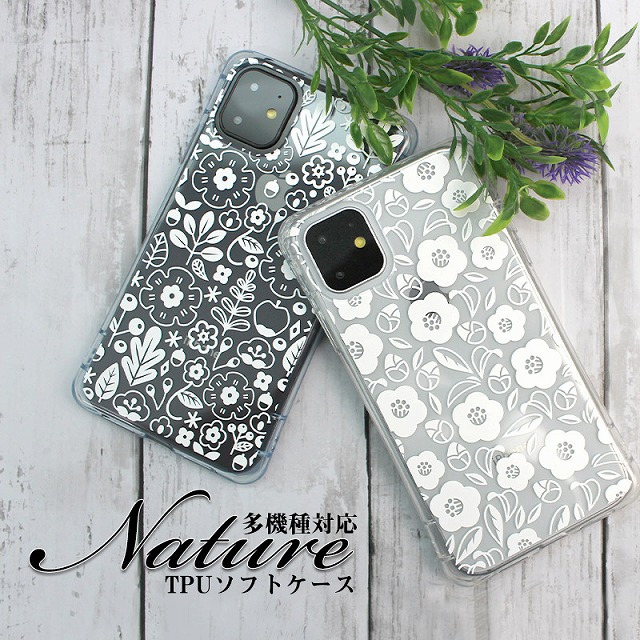スマホケース カラー TPUソフトケース nature 自然 ボタニカル 北欧 Pixel8a iPhone16 iPhone15 iPhone14 Xperia 10VI 5V AQUOS sense9 sense8 arrowsWe2 BASIO active2 イニシャル ピンク ブルー グリーン パープル イエロー 多機種対応 送料無料 カラーTPU