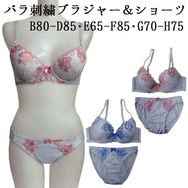 ブラジャー&ショーツセット ブラ ショーツ セット ブラセット ブラショーツ ブラショー ブラ&ショーツ バラ 刺繍 B80 B85 C80 C85 D80 D85 E65 E70 E75 E80 E85 F65 F70 F75 F80 F85 G70 G75 H70 H75 インナー 下着 ナイトウエア レディースインナー メール便送料無料