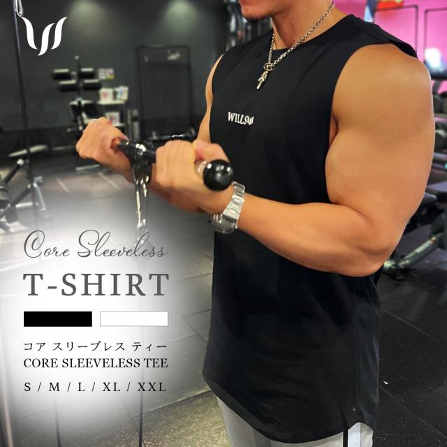 ノースリーブ メンズ WILLS FITNESS ウィルズ フィットネス Tシャツ CORE SLEEVELESS T SHIRT ロゴ 筋トレ ジム ウエア スポーツウェア ストレッチ コットン LIVE FIT VANQUISH ユ00582