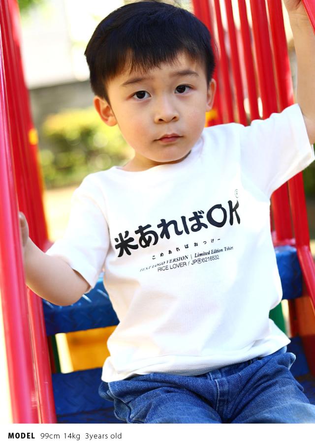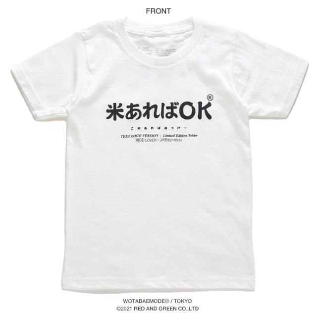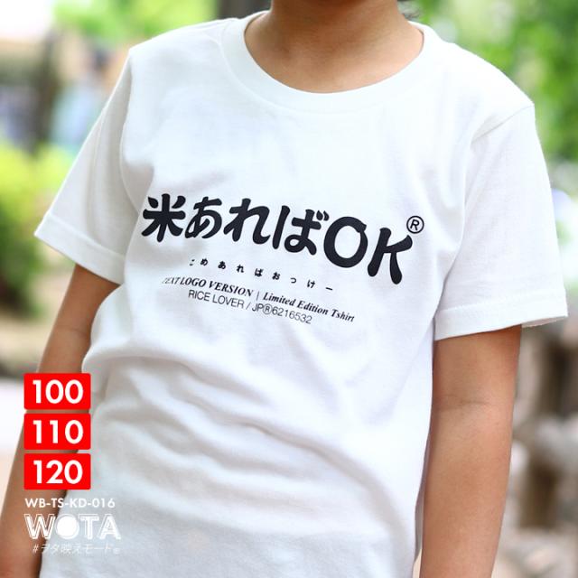 米あればOK 公式 おもしろ Tシャツ 半袖 ネタTシャツ トップス キッズ 春夏用 白 100cm 120cm 男の子 女の子 子供用 子供 お米 日本語 文字 ロゴ ヲタ映えモード 面白い かわいい 外国人 インバウンド 原宿系 ファッション ブランド ギフト クリスマスギフト WB-TS-KD-016