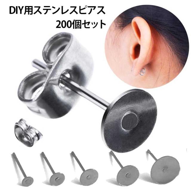 [200個セット] DIY用 ステンレスピアス ステンレスキャッチ スタッドピアス ポスト パーツ キャッチピアス ジュエル ストーン 天然石 ジルコニア カボション用 平ら 貼り付け 大きい 小さい ピアス作り クラフト 手作り 部品 金具 人気 メンズ レディース 20G 20ゲージ