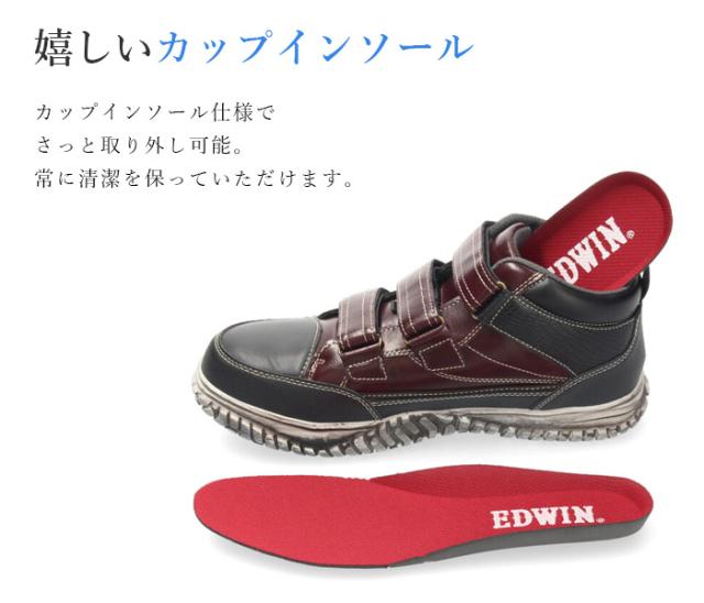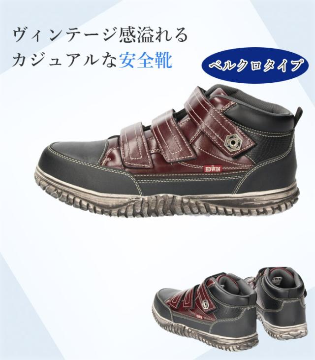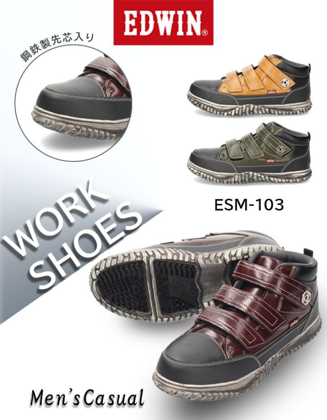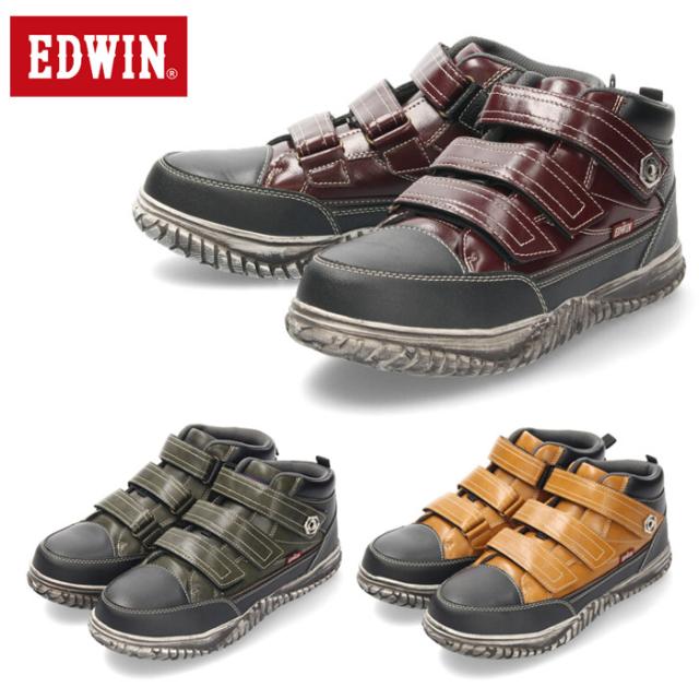 エドウィン EDWIN ESM-103 スニーカー メンズ ミッドカット ベルクロ 作業靴 安全靴 おしゃれ 軽い 軽量 ワークシューズ カジュアル シューズ ワイン キャメル カーキ