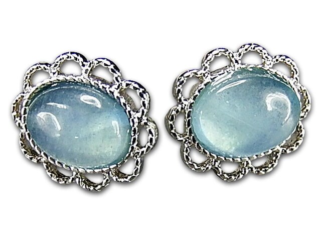 AAA透明シラー効果有良質より濃い目アクアマリン天然石ピアス925銀天使の石