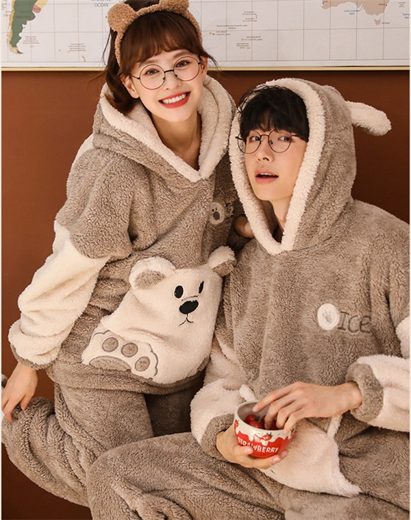 熊柄 カップルパジャマ 着る毛布 ペアパジャマ 寝間着 寝巻き ペア ルームウェア 結婚祝い ギフト プレゼント もこもこ フリース ペアルック カップル パジャマ 上下セット