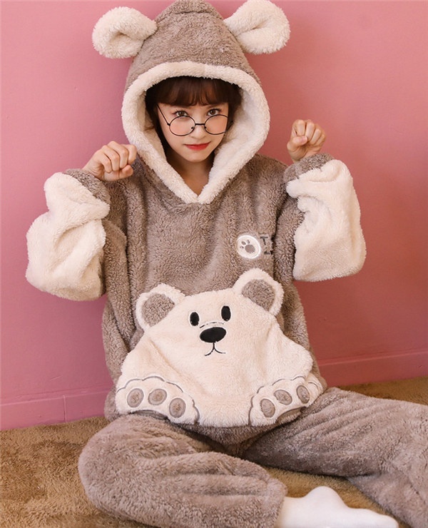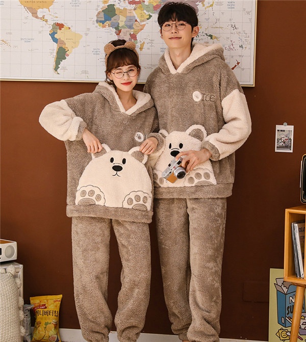 熊柄 カップルパジャマ 着る毛布 ペアパジャマ 寝間着 寝巻き ペア ルームウェア 結婚祝い ギフト プレゼント もこもこ フリース ペアルック カップル パジャマ 上下セット 夫婦 お揃い 長袖パジャマ 長ズボン お揃いパジャマ dh854g4g4s3