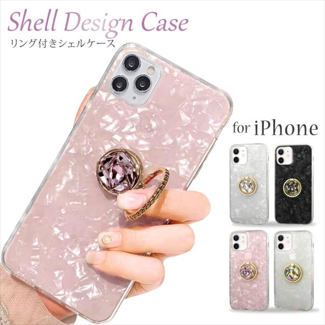 iPhone12 mini Pro Max iPhone11 リング付きケース シェルデザイン 貝殻 シェル オーロラ TPU 12Pro 12ProMax 12mini スマホリング スマホケース ソフトケース やわらか 背面 アイフォン フィンガーリング